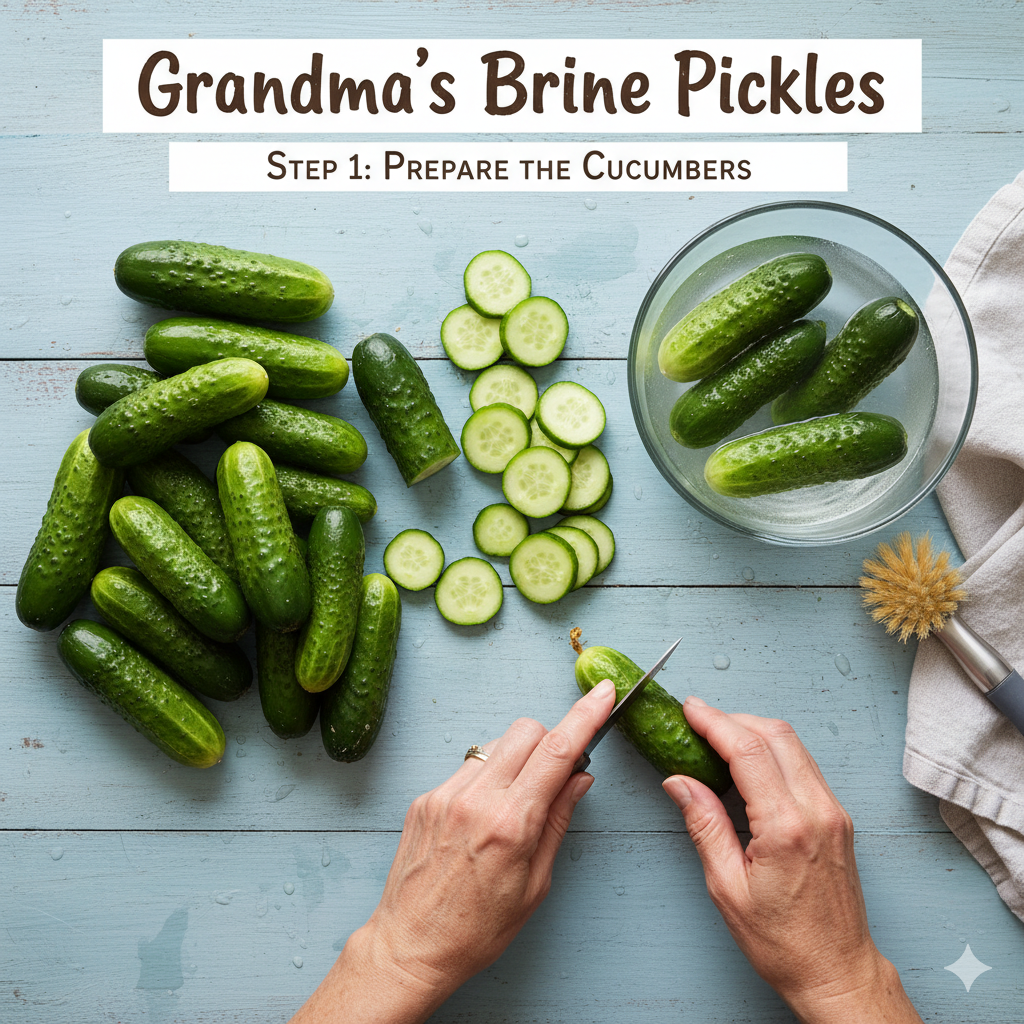Wash cucumbers thoroughly and place 2–3 pounds into the brine.