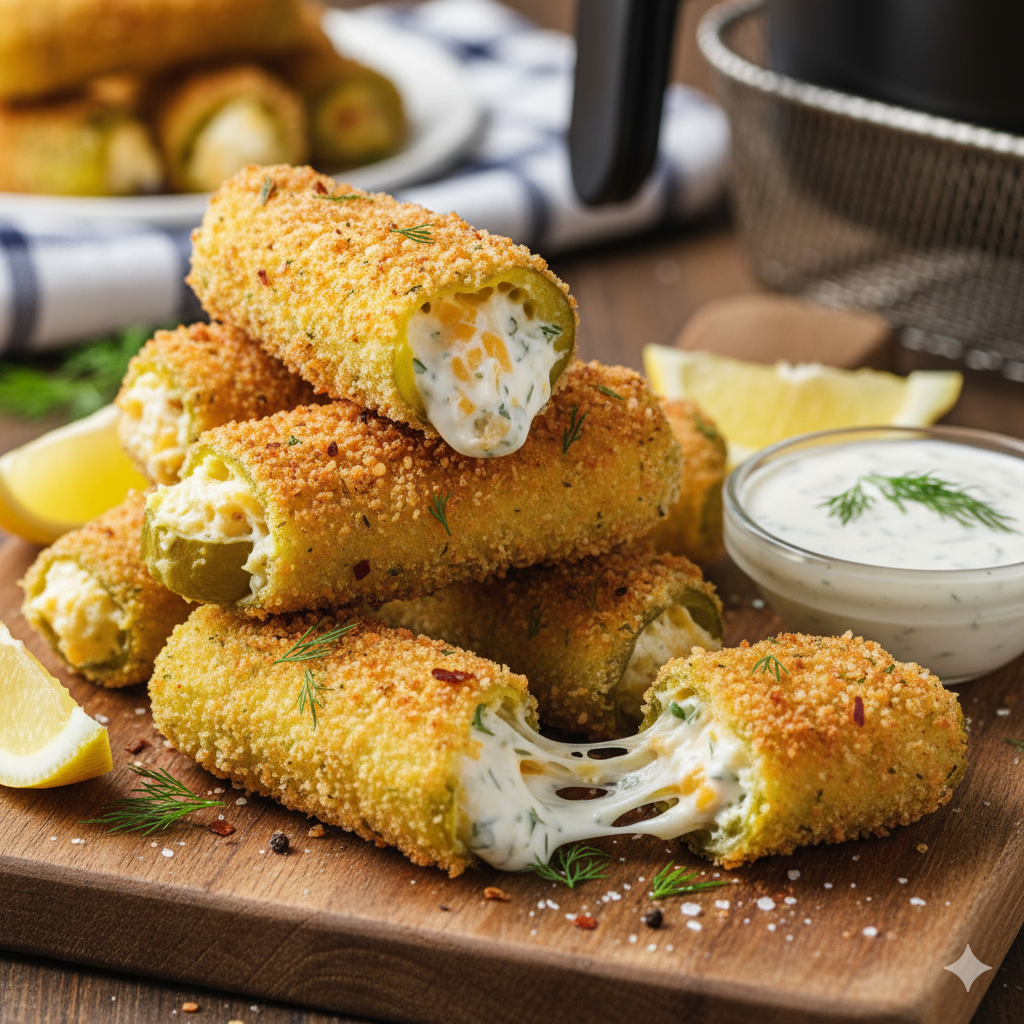 These Stuffed Air-Fried Pickles are crispyoutside, creamy inside & totally irresistible!A flavor bomb you'll keep craving for!